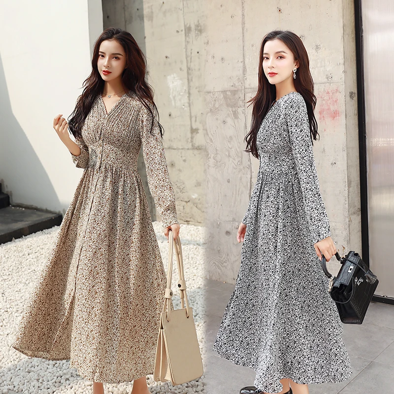 Floral Print Ruffle Hem Ruched Chiffon Dress